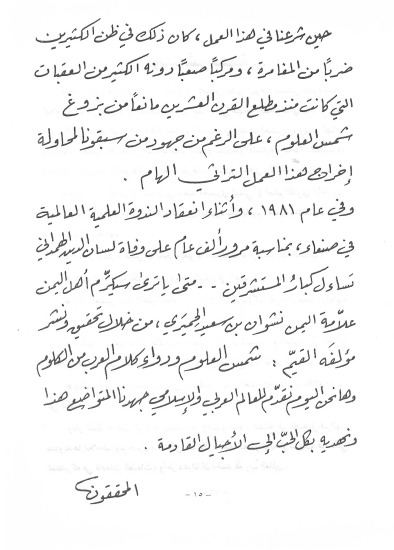 يخص الكتاب اليمن بمعلومات تاريخية بأسماء الملوك والملكات، وجغرافية بأسماء المناطق والمدن والجبال، ولغوية بمفردات حميرية قديمة أو ترد في نقوش المسند واللهجات اليمنية، والأمثال الحميرية باللهجة الدارجة، مع صورة خط المسند، ويذكر الكلام الحميري المؤيد بنقوش المسند المكتشفة حديثاً، وبالأخبار والأشعار.