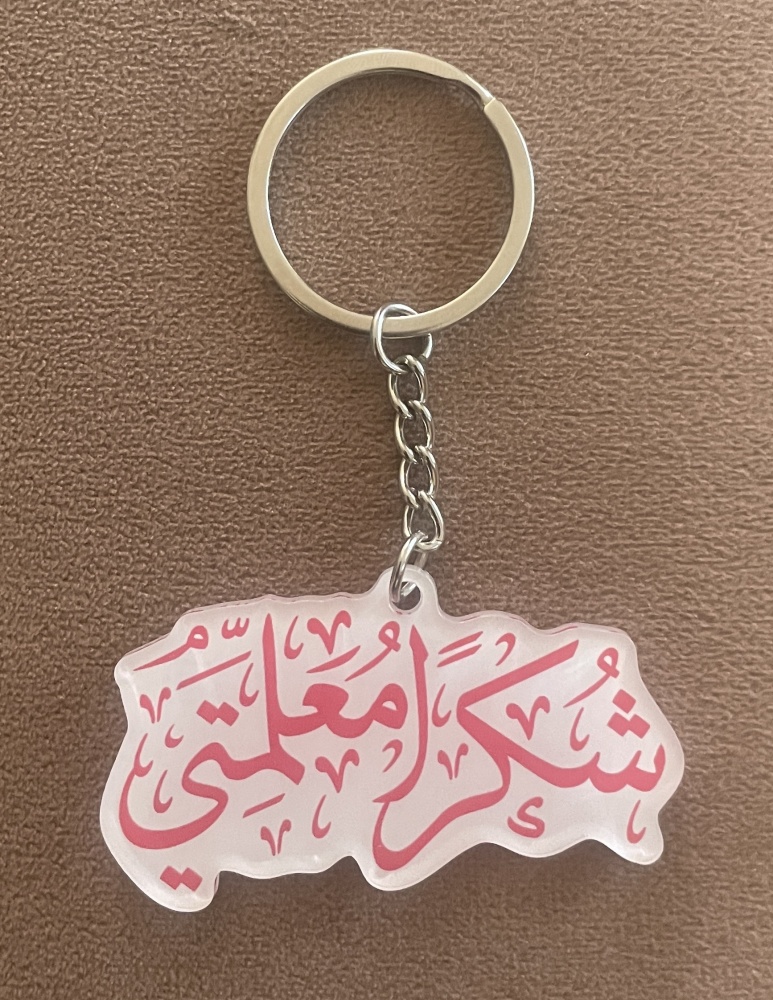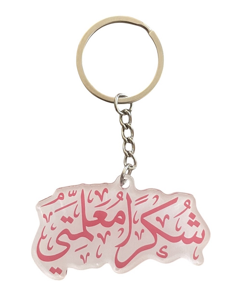 Porte clé "Choukran Mou'alimmatî شكرا معلمتي" (Merci maîtresse).