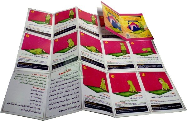 Dépliant pour l'apprentissage de la prière illustré... une face garçons et une face filles.