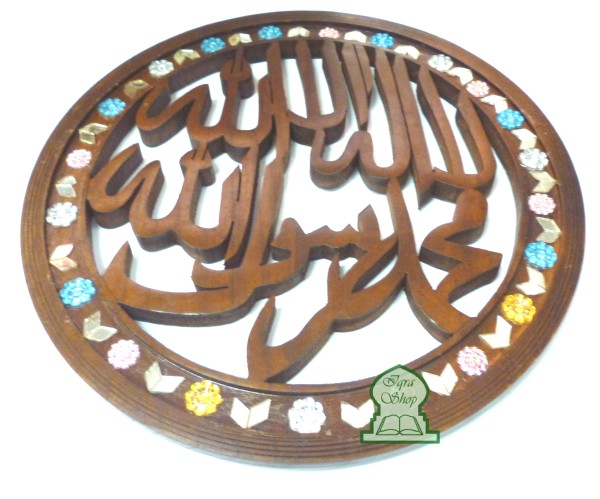 Tableau rond en bois sculpté avec l'attestation de foi musulmane Deco & Cadeau