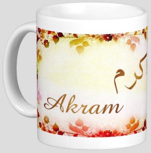Mug avec le prénom "Akram" calligraphié en arabe (أكرم).