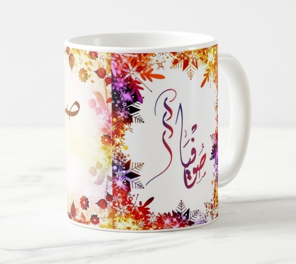 Mug avec le prénom "Sofia" écrit en français, en arabe (صوفيا) et calligraphié de façon artistique en arabe sur la partie droite.