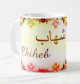 Mug avec le prénom "Julia" écrit en français, en arabe (جوليا) et calligraphié de façon artistique en arabe sur la partie droite.