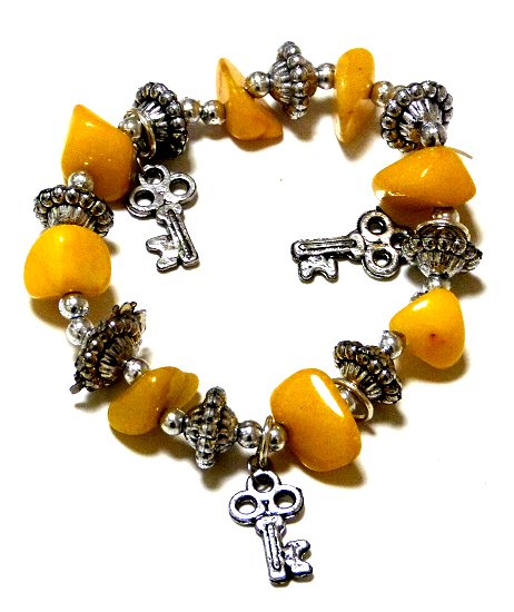 Joli bracelet avec des petites clés et des pierres jaunes.