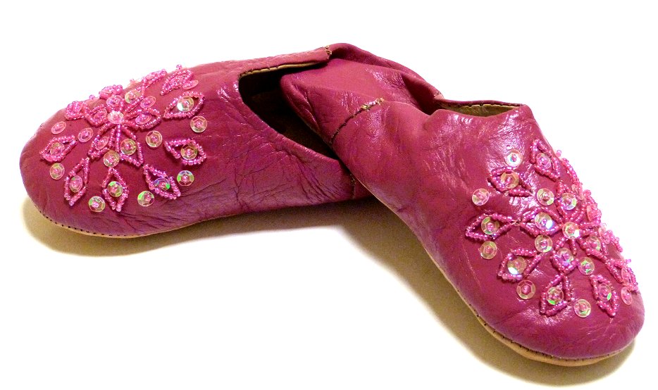 Babouche berbère traditionnelle à extrémité arrondie pour femmes couleur rose décorée de strasses - REF. 16658 (15.00 €)