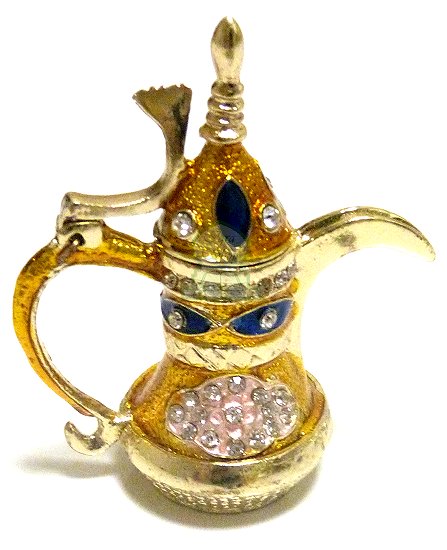 Très bel objet décoratif métallique, orné de diamants, toute dorée.