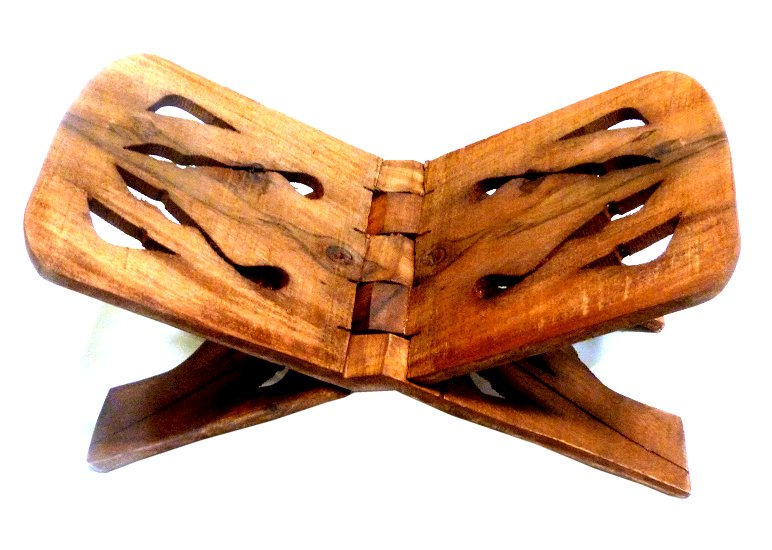 Sculpté en bois, pratique pour y poser un livre lorsqu'on s'assoit par terre pour lire et méditer. Facile à ranger (se plie). Généralmeent utilisé dans les mosquées ou les maisons pour lire le Coran.