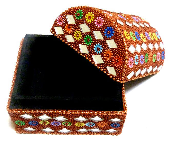 Boite à bijoux brillante et décorée de couleur marron - REF. 21176 (6.50 €)