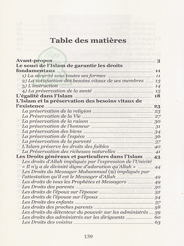 Après avoir souligné le souci de l’Islam de garantir les droits fondamentaux et exposé les droits généraux et particuliers, l’auteur a précisé les spécificités des droits de l’homme dans la législation islamique. Il apporte enfin des réponses détaillées aux préjugés entretenus à ce sujet.