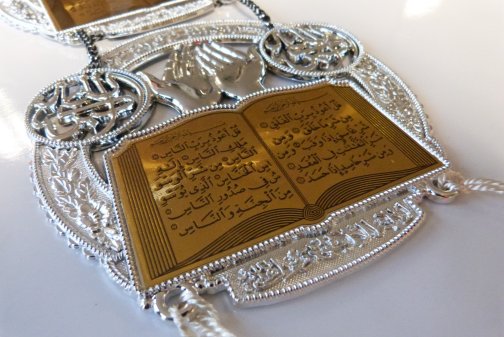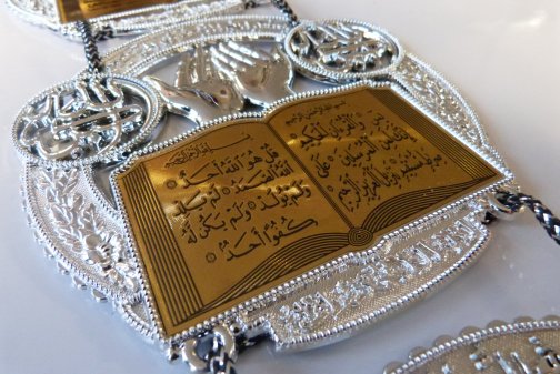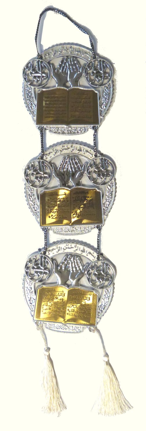 Cadre mural constitué de trois parties contenant des versets coraniques (Ayatul Kursî) et sourates Al-Fâtiha, Yâssin...