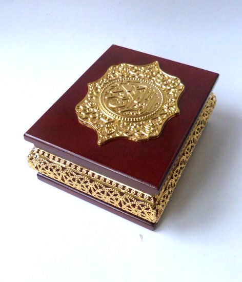 Coffret en bois de luxe special Coran avec jolis motifs metalliques dores
