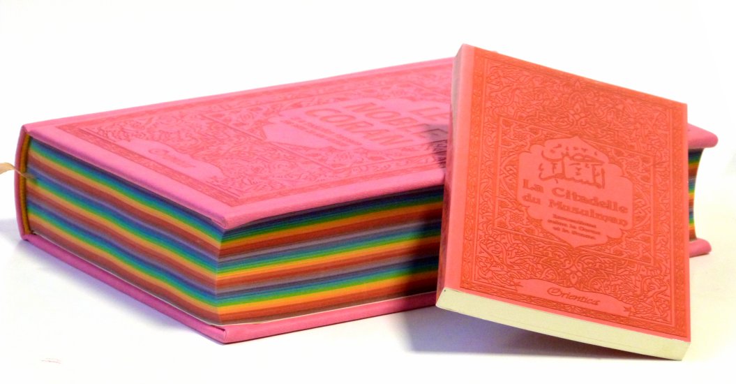 Pack Cadeau rose pour femme musulmane : Le Saint Coran Rainbow, Chapitre Amma et La citadelle du musulman (en français-arabe-phonétique) - REF. 28517 (34.00 €)