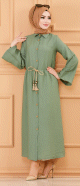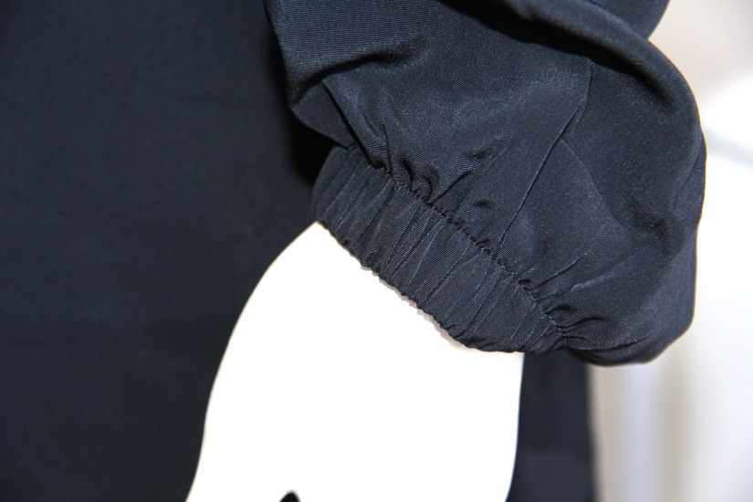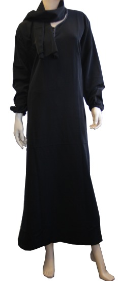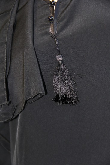 Abaya simple noire avec les manches élastiques et les col satiné noir fermeture avec deux boutons.