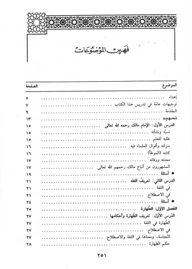 هذا الكتاب هو المستوى الثاني في فقه العبادات لكبار الطلاب من أبناء الحلقات والمعاهد القرآنية، على مذهب إمام دار الهجرة مالك بن أنس رحمه الله، وقد رُوعيَ فيه تيسير العبارة، وتوضيح الأحكام، والاقتصار على أمّهات المسائل، كما اعتمد فيه الراجح من أقوال السادة المالكية.