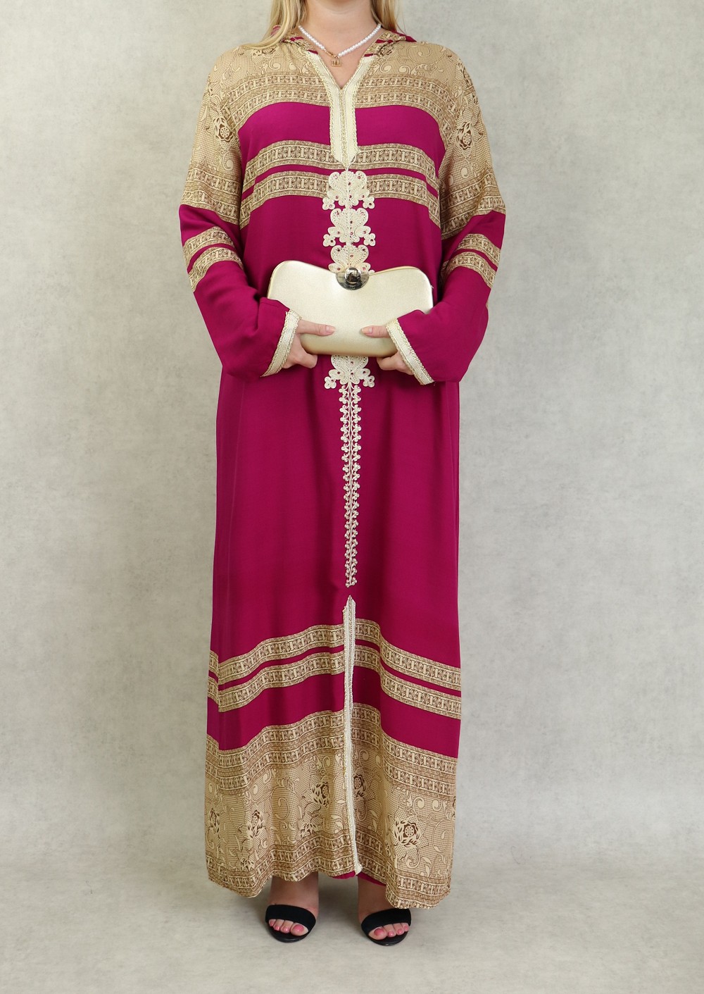 Robe longue style oriental à capuche avec broderie et strass pour femme - Couleur fuchsia Vetement & Accessoire