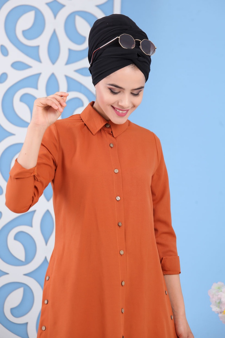 Tunique Chemise longue derrière légèrement courte devant, manches longues et poignets boutonnés, indispensable pour vos tenues en tout genre, chic casual, notez ses petits boutons décoratifs sur les cotés. Cette chemise femme saura vous séduire. Ce modèle est un essentiel à collectionner dans toutes les couleurs !