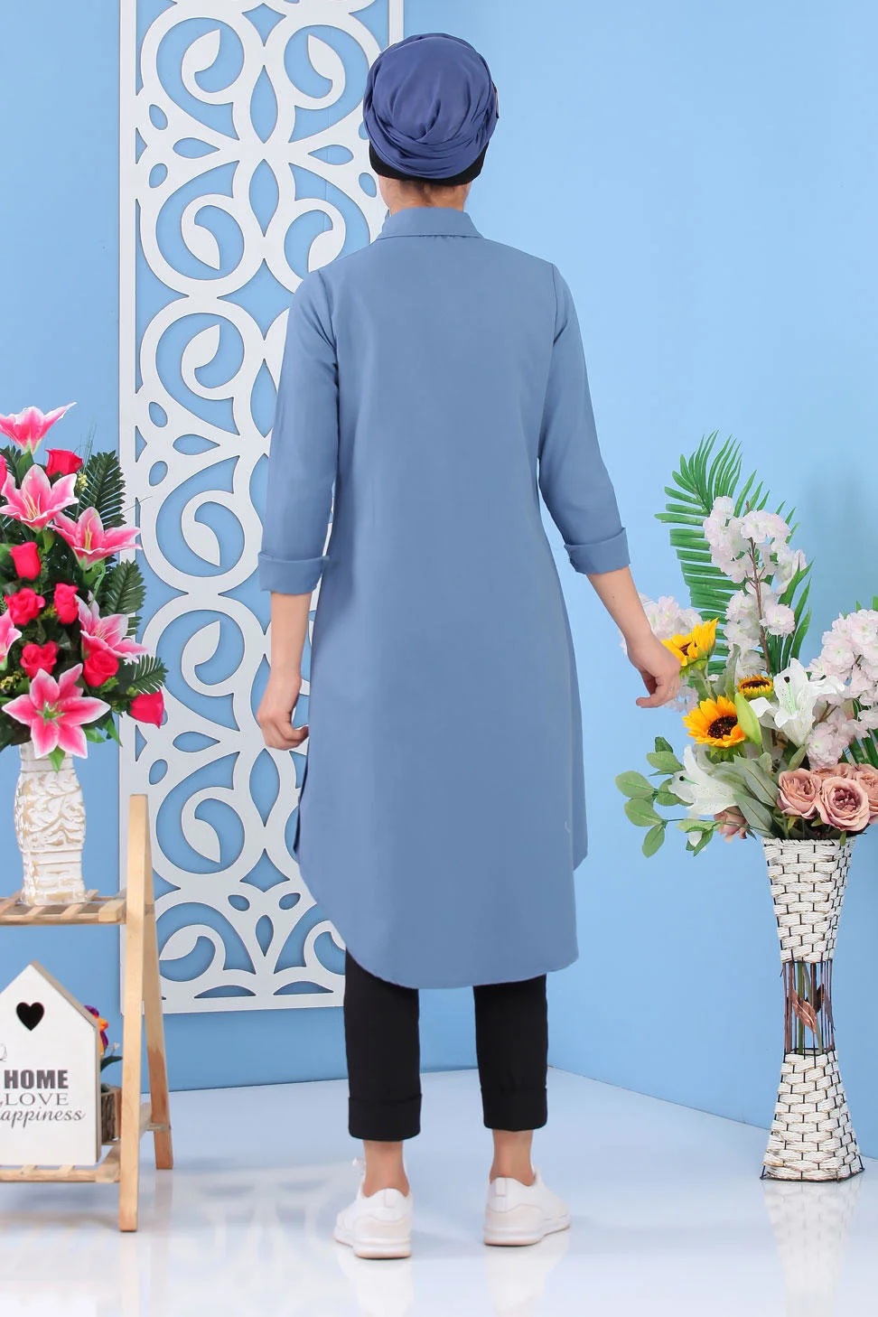 Tunique chemise longue pour femme - Couleur Bleu Vetement & Accessoire