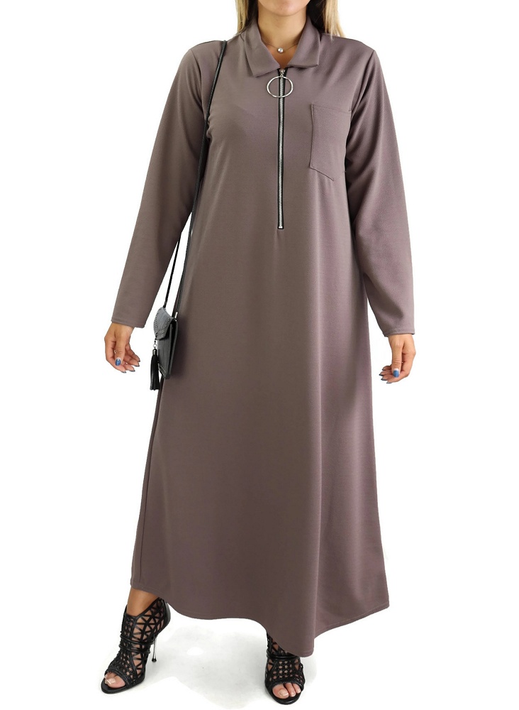 Robe longue fermeture zip avec ceinture pour femme (Taille standard) - Couleur taupe