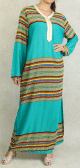 Robe orientale moderne manches longues à paillettes et rayures multi-couleurs horizontales - Couleur Vert émeraude - REF. 31832 (24.90 €)
