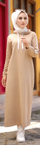 Robe longue décontractée type sport avec capuche (Vetement de sport moderne pour femme voilée) - Couleur beige - REF. 33222 (19.90 €)