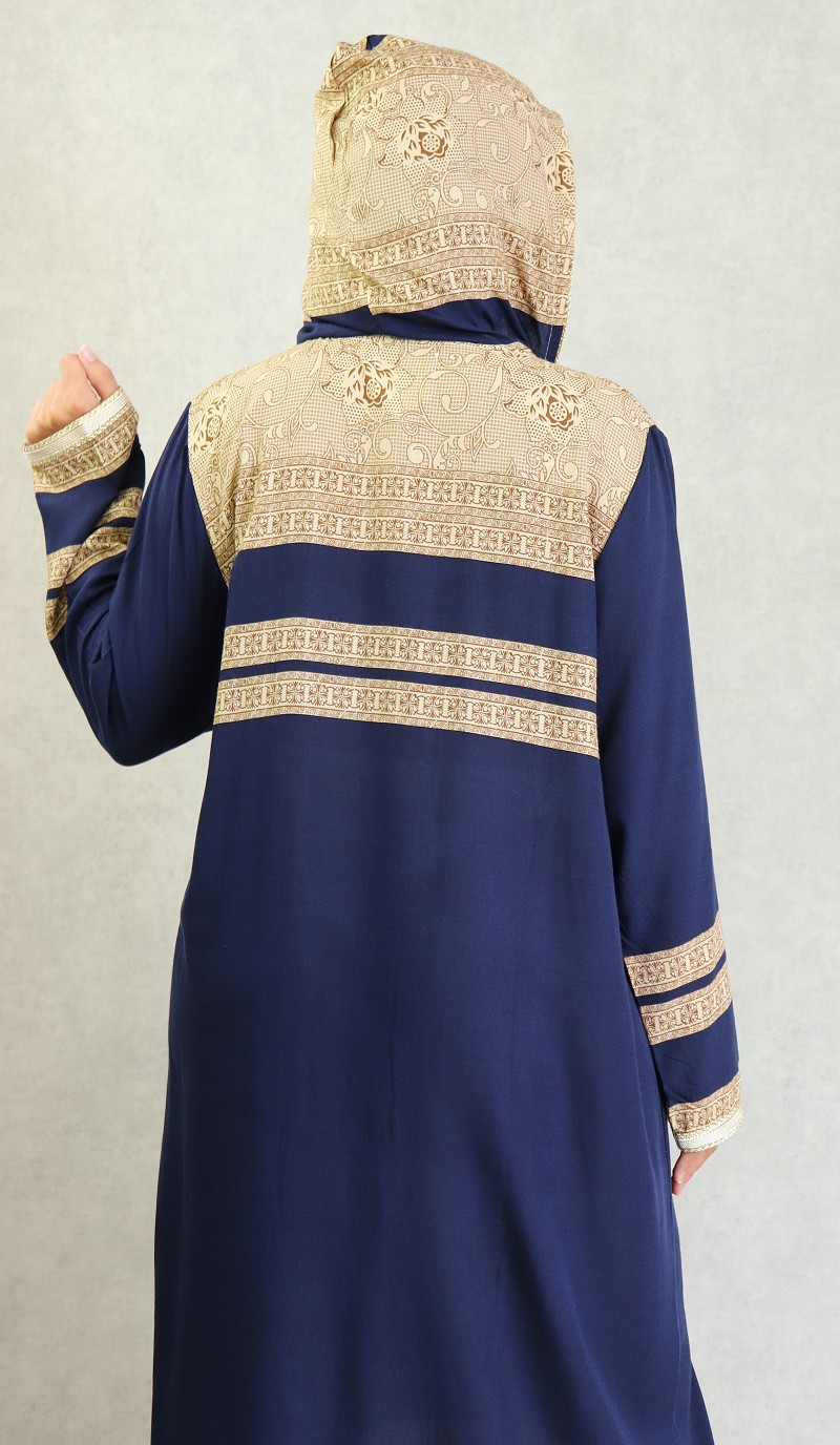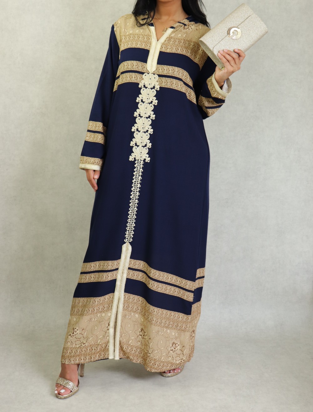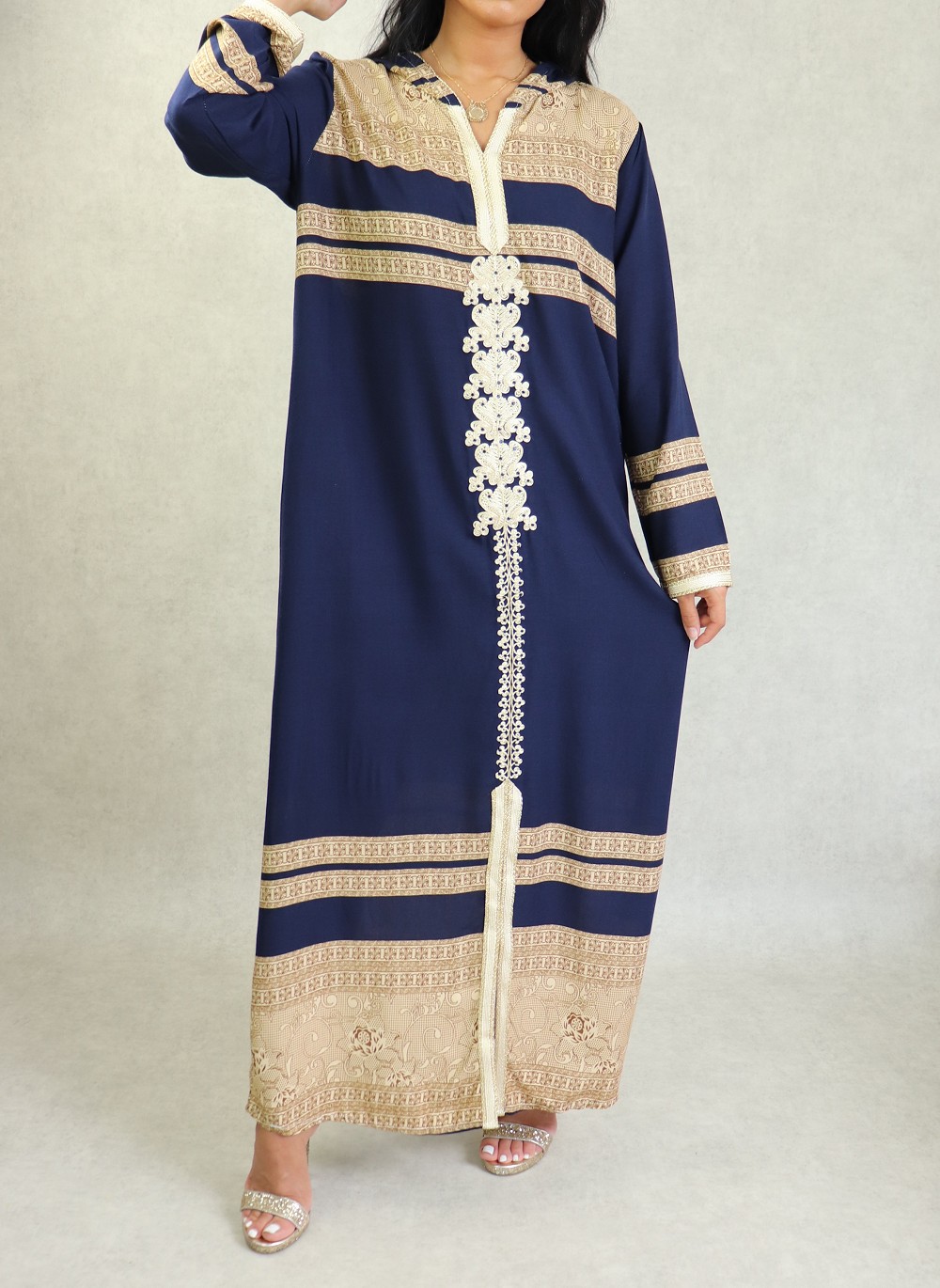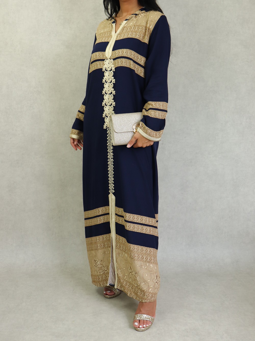 Robe Abaya brodée pour femme - Couleur Bleu Marine - REF. 30930 (28.00 €)