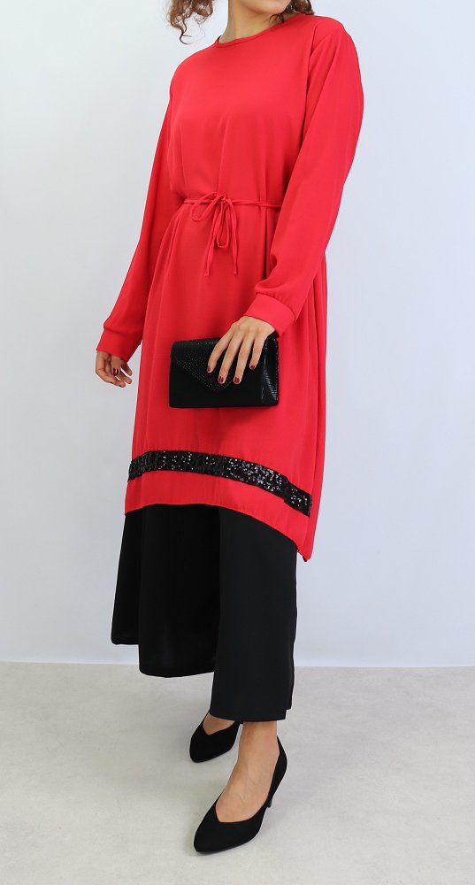 Tunique en crepe avec strass noirs - Couleur Rouge