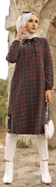 Tunique longue à rayures (Tenue hijab) - Couleur anthracite et rouge - REF. 35176 (24.90 €)