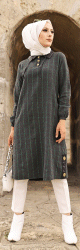 Tunique longue à rayures (Vetement hijab) - Couleur anthracite et vert - REF. 35177 (24.90 €)
