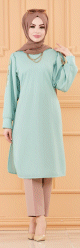 Tunique longue avec dorures (Vetement femme hijab moderne) - Couleur menthe - REF. 36457 (24.90 €)