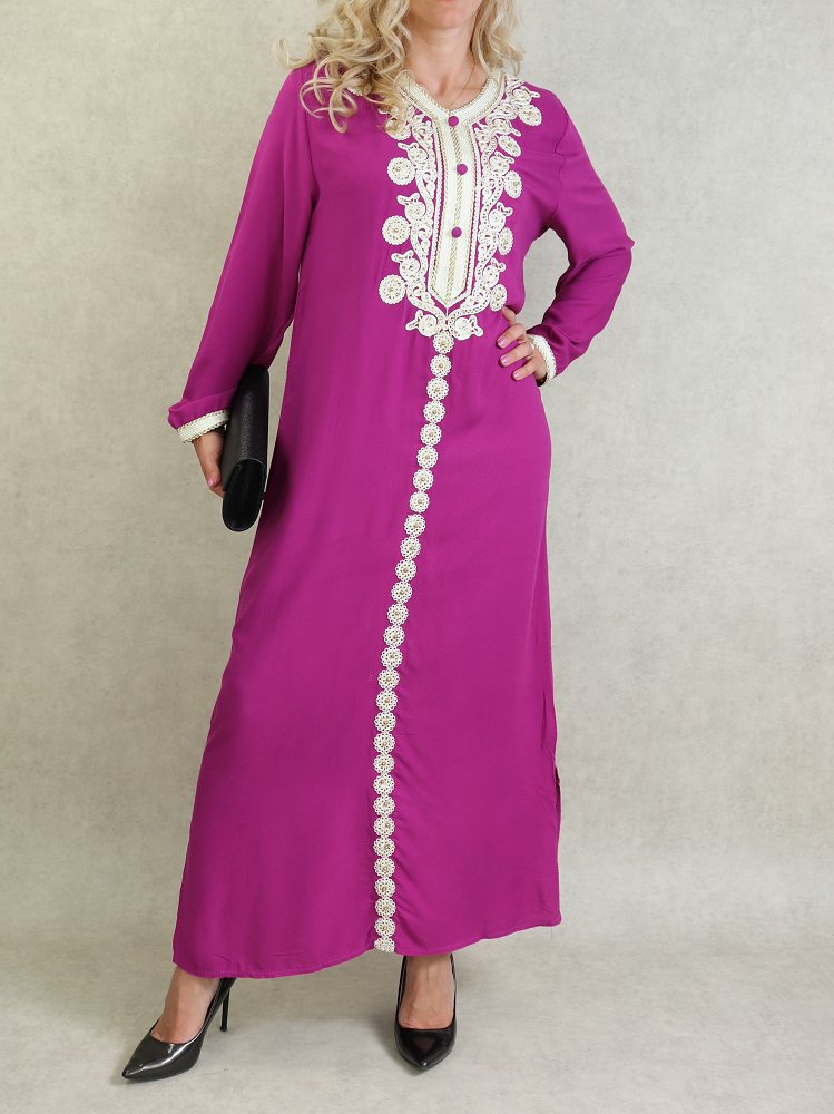 Robe Algérienne longue avec broderie et strass style caftan - Couleur Magenta Vetement & Accessoire