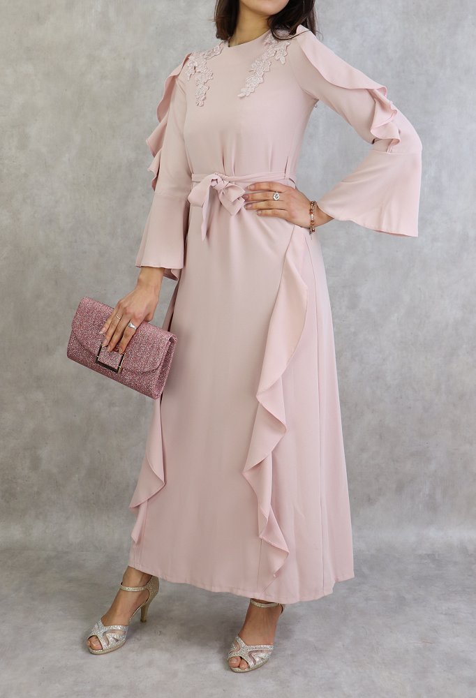Robe longue à froufrous - Couleur Vieux rose clair Vetement & Accessoire