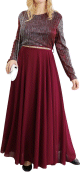 Robe longue, col rond, manches finition cloches, fermeture à glissière dans le dos, entièrement doublée, broderies sur tout la longueur et une partie des manches, tulle effet volant sur la partie basse.