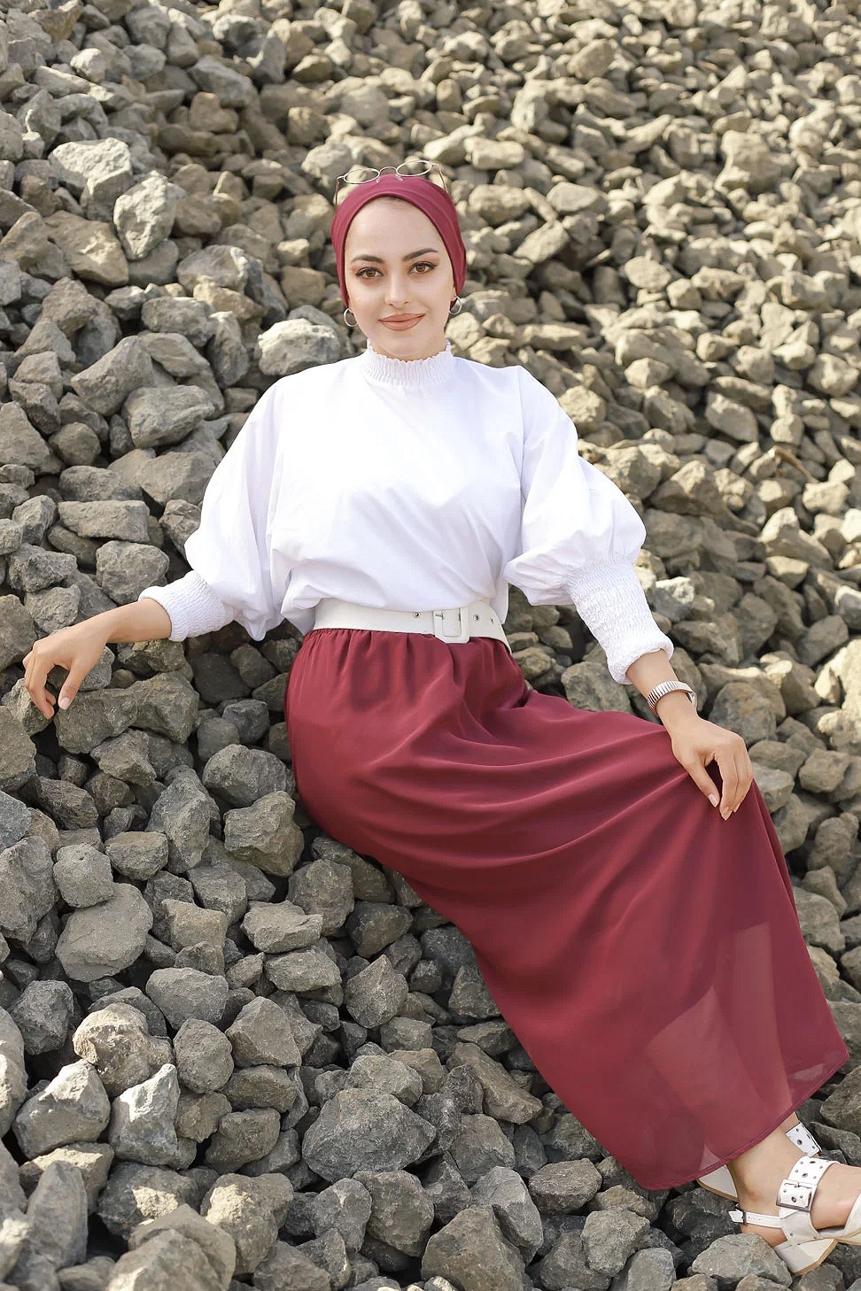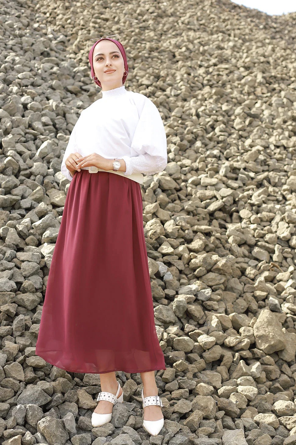 Jupe femme ample et evasee (Mode musulmane) - Couleur bordeaux