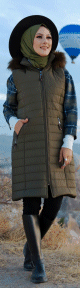 Manteau avec capuche fourrure pour l'hiver (Vetement hijab) - Couleur kaki - REF. 35490 (39.90 €)