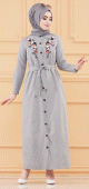 Robe longue boutonnée avec broderie et ceinture (Vêtement Hijab & Modest Fashion pour femme) - Rayures couleur noir - REF. 35995 (29.00 €)