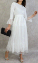 Robe de soirée en tulle et dentelle brodée longue pour femme - Couleur blanche rose poudré - REF. 33054 (49.00 €)