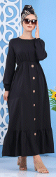 Robe longue, col chemise, fermeture bouton sur le buste, manches retroussables finition bouton aux poignets, avec une poche plaquée et deux poches latérales. Coupe évasée. Tissu très agréable à porter en toutes saisons.