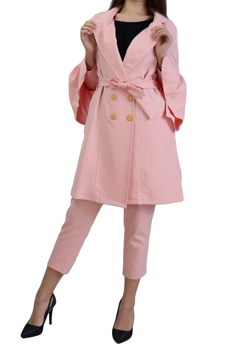- Blazer : Tissu extensible avec revers classique et boutons beige. Ce modèle présente des poches latérale. Avec ses manches longues évasées et sa ceinture assortie qui marque votre taille, coupe légèrement évasée. .