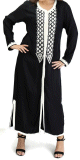 Robe Marocaine / Gandoura à manches longues avec broderie blanche - Couleur Noir
