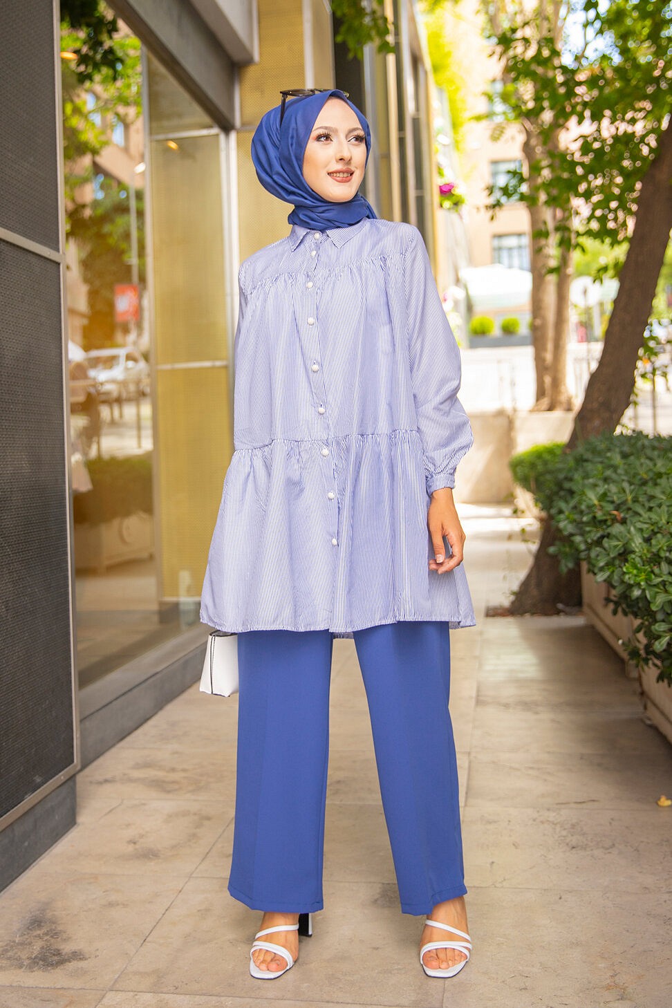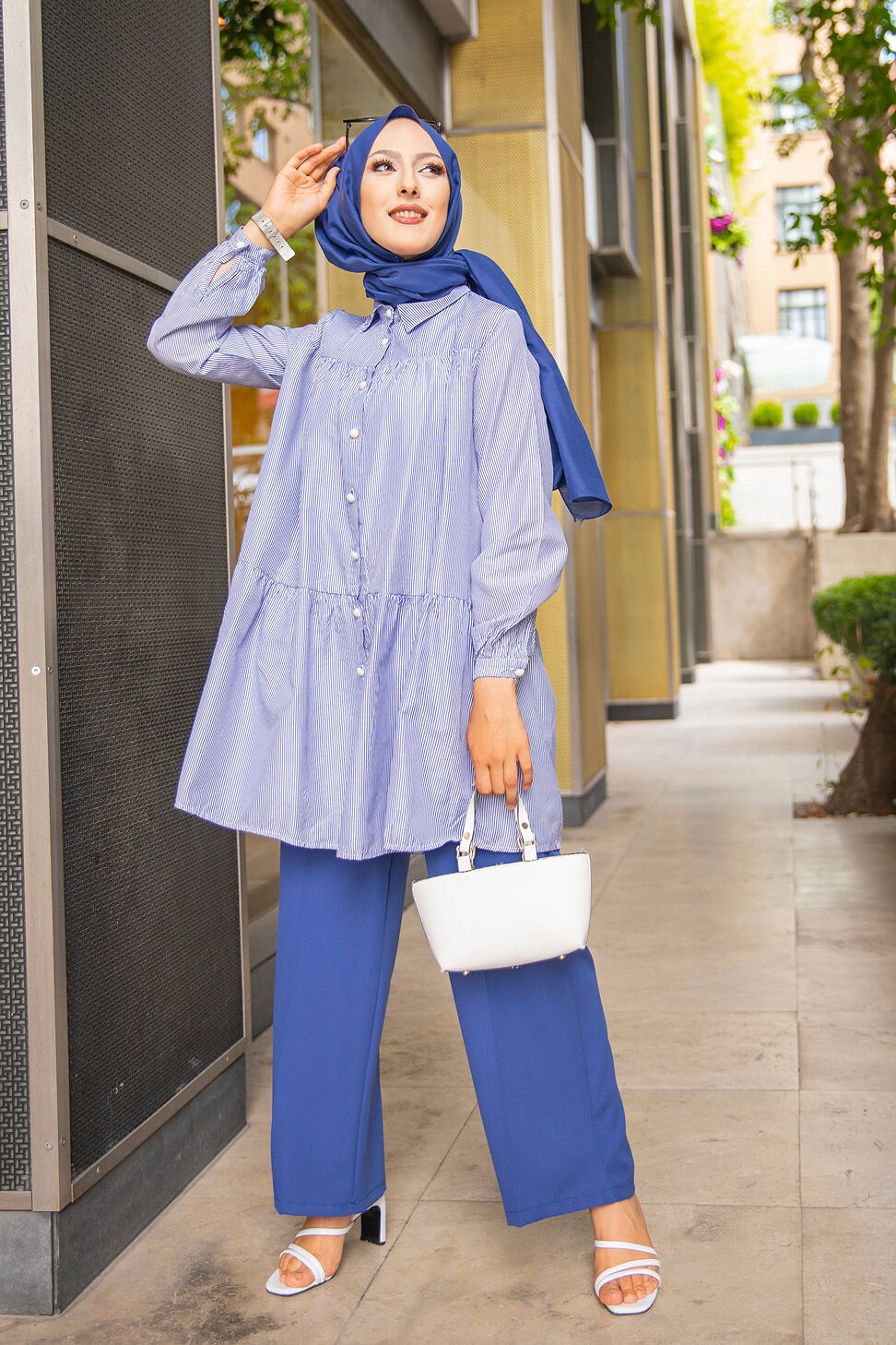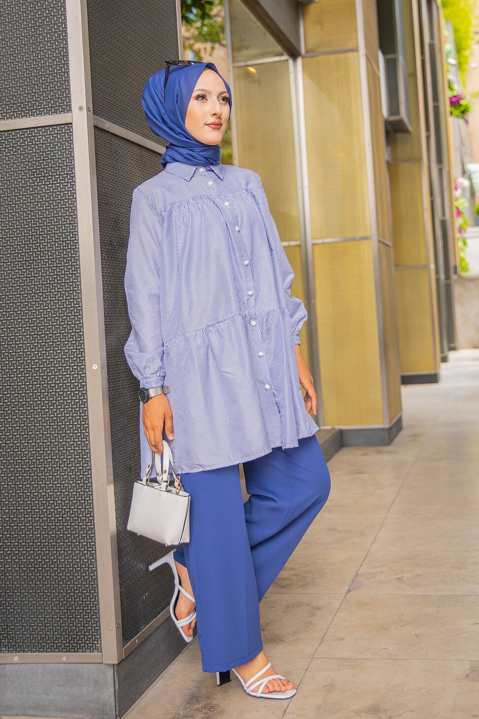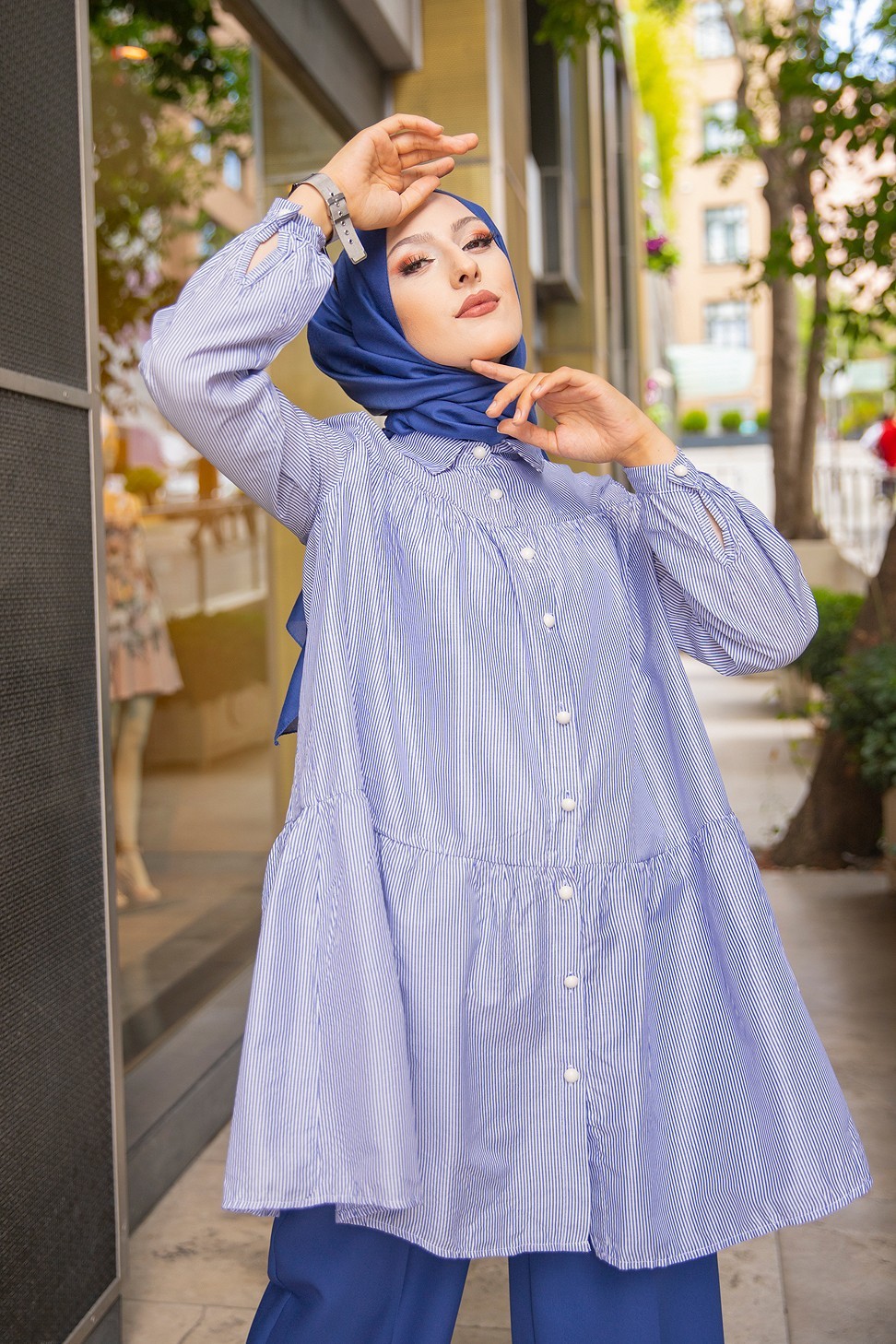 Chemise-Tunique tendance, coupe large et ample. Ce style oversize est d'ailleurs très appréciées pour leur confort et pour une allure mastour, elle se porte avec une jupe ou un pantalon pour un look moderne.