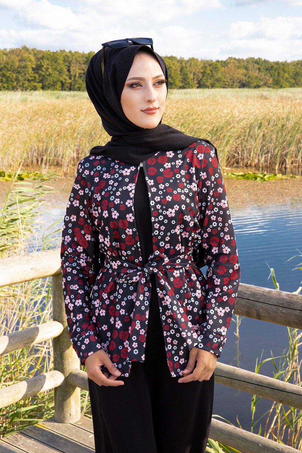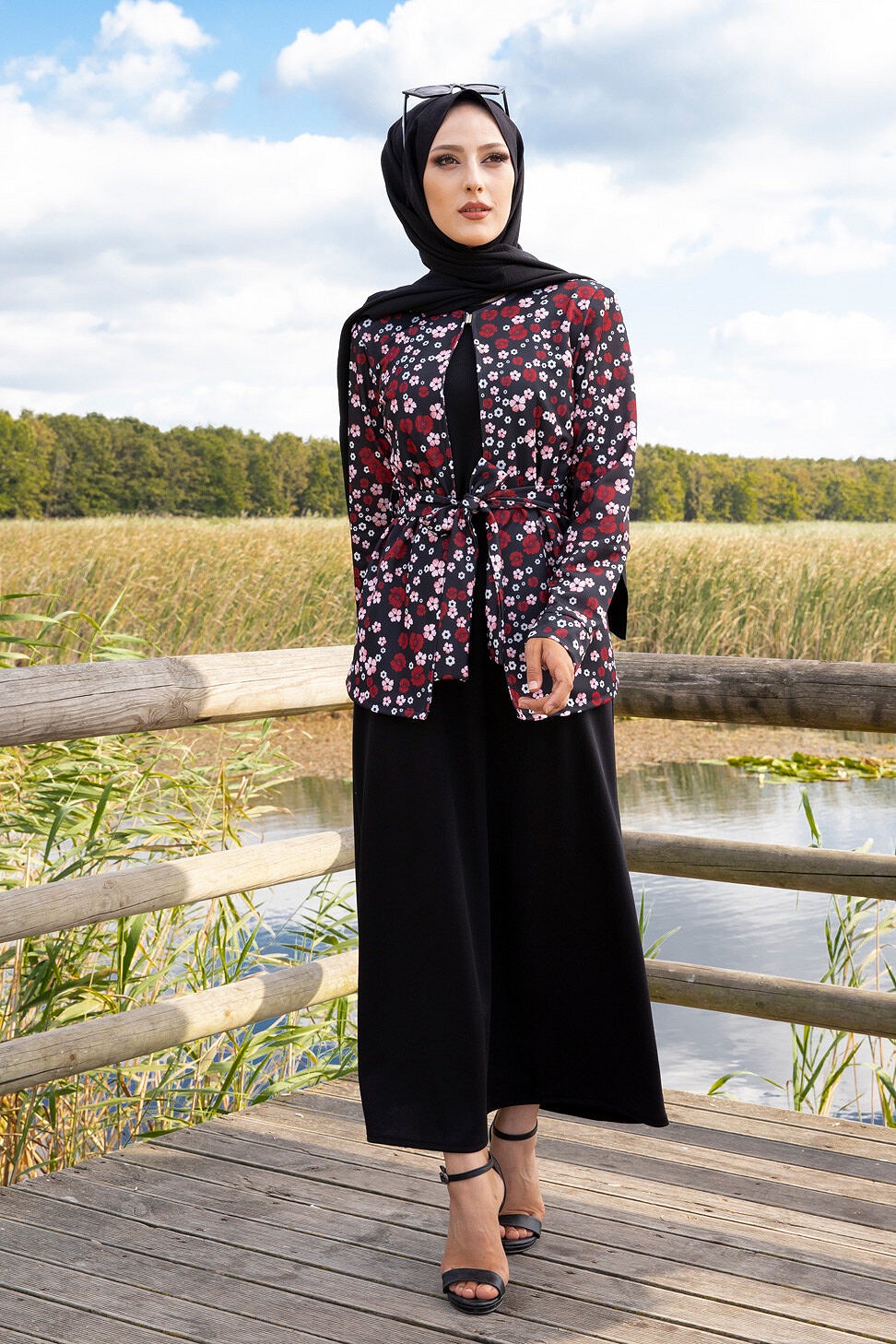 Robe à fleurs (motifs fleuris) - Vêtements pour femme voilée en ligne - Couleur noire - REF. 32943 (24.90 €)