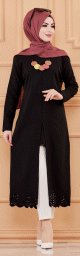 Chemise longue, fermeture boutons, manches finition élastique, lien de serrage à la base. Coupe droite, tissu doux.