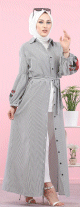 Robe chemise imprimée à rayures (Vetement hijab femme voilée) - Couleur gris et blanc - REF. 32751 (29.90 €)
