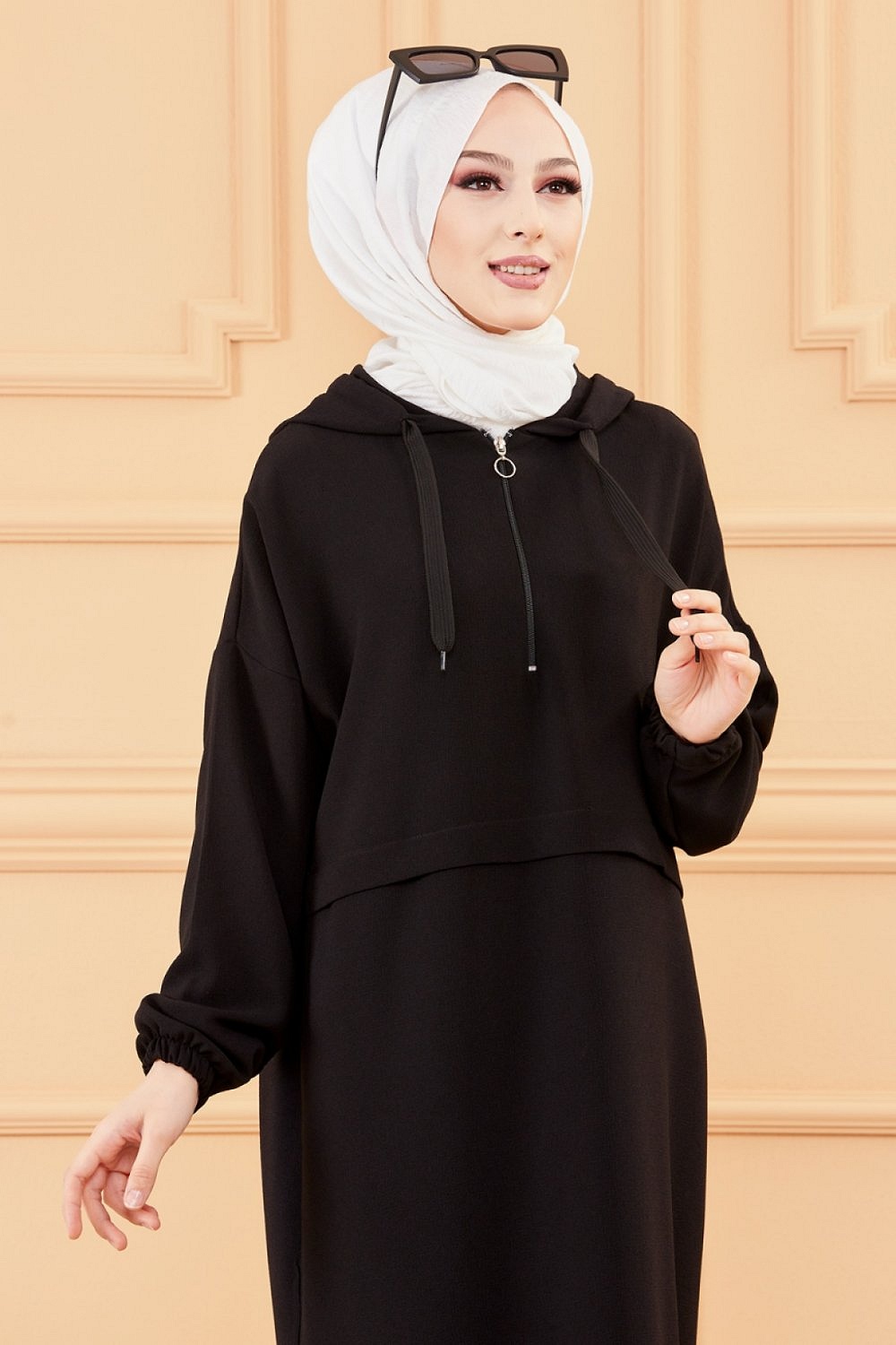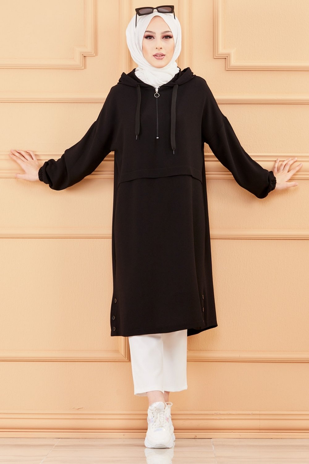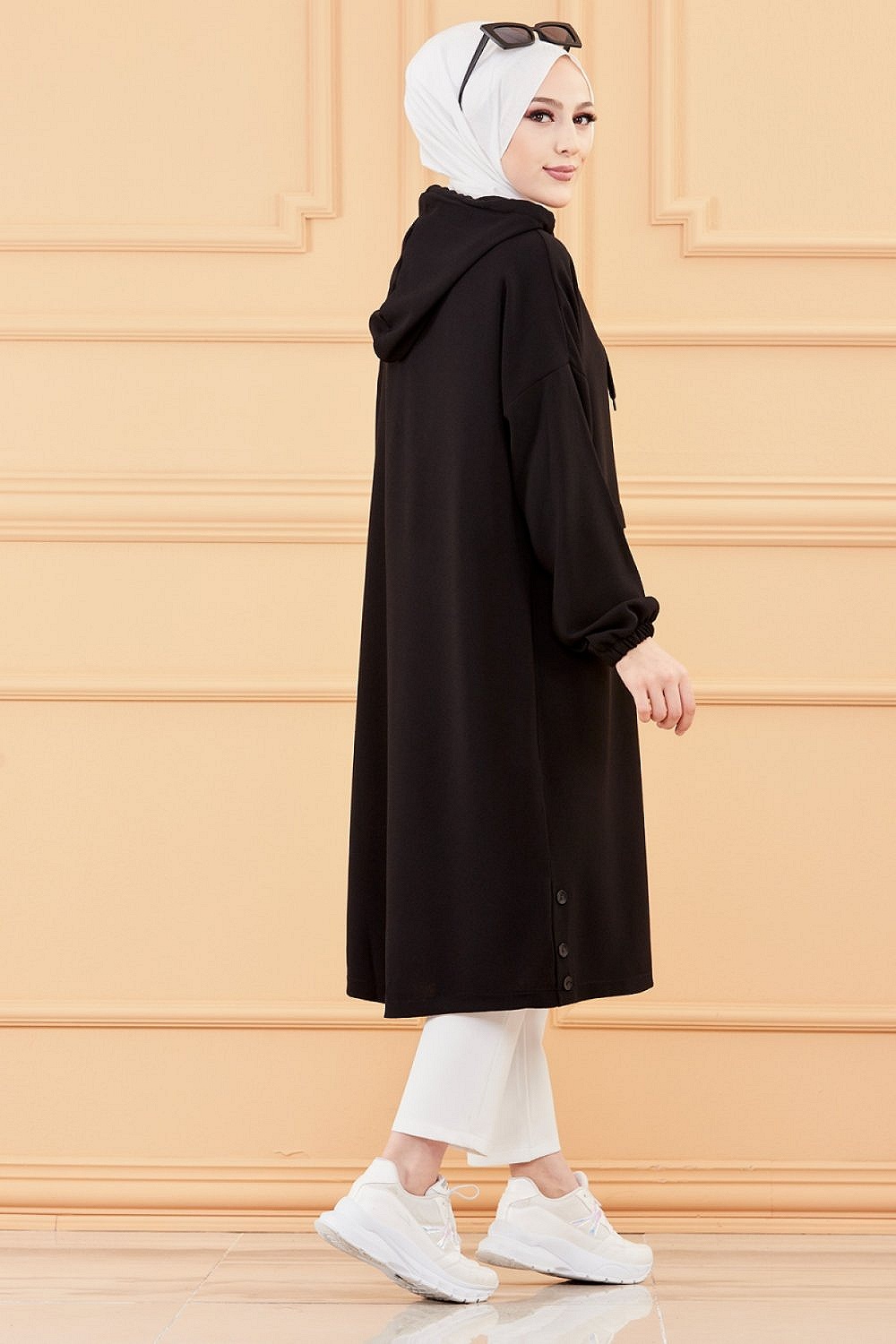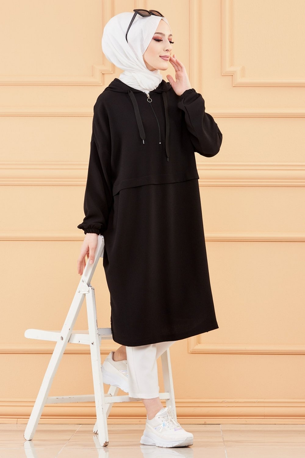 Tunique decontractee ample avec capuche (Tenue style sportwear pour femme musulmane) - Couleur noir