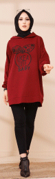 Tunique avec capuche imprimé "Like a cute baby" (Vetement Moderne Hijab) - Couleur bordeaux - REF. 37725 (26.00 €) - En Promotion à 19.90 €