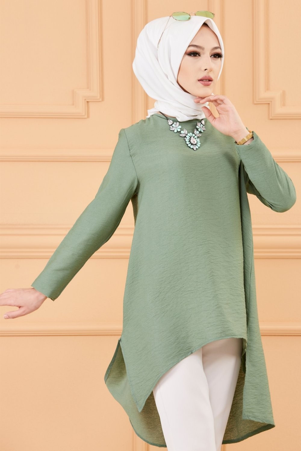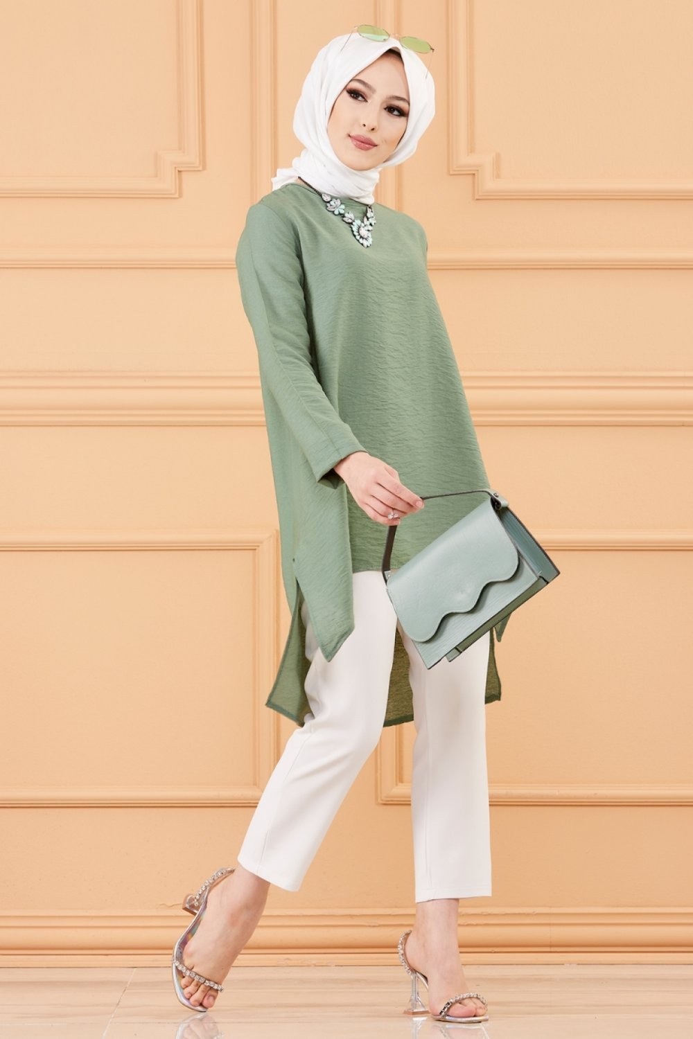 Tunique fendue ample habillée pour femme (Vêtement Hijab Sytle) - Couleur kaki - REF. 36398 (24.90 €)