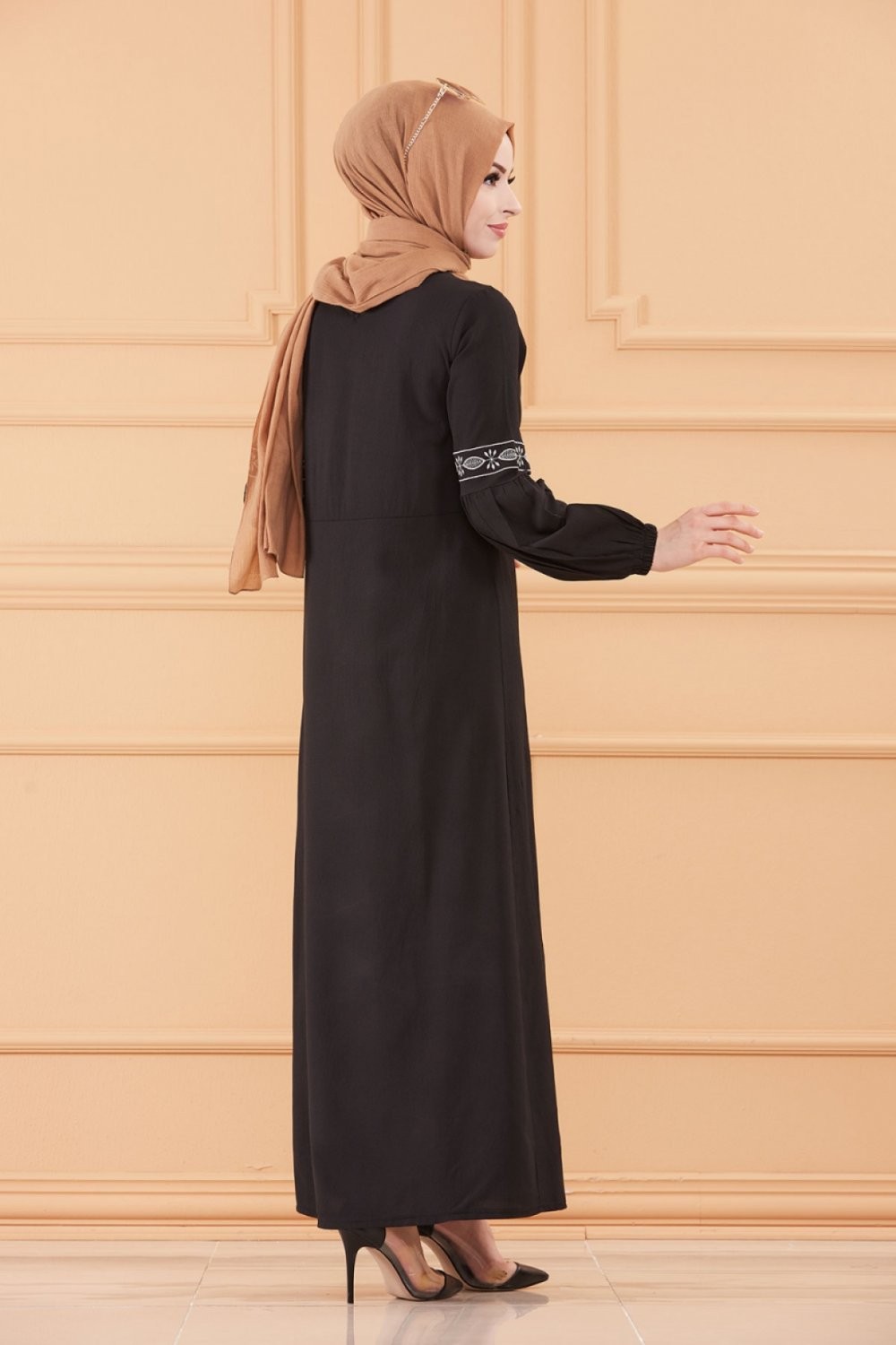 Robe longue brodee pour femme musulmane (Modeles de Robes Style Classique pour Hijab 2025) - Couleur noir
