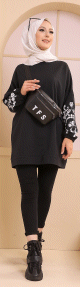 Tunique décontractée avec manches à motif fleurs (Tenue Hijab pour femme musulmane) - Couleur noir - REF. 35297 (23.00 €)