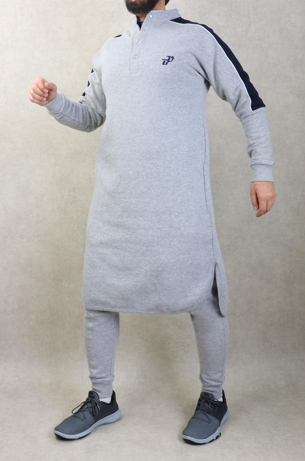 Ce qamis court peut s'adapter avec tous les pantalons gris chinés ou bleu marine de la marque Best Ummah.