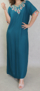 Robe orientale maxi-longue avec de nombreuses broderies à motif fleurs pour femme - Couleur Vert émeraude - REF. 33432 (29.00 €)